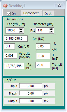 When you right-click on a Dendrite Icon you will be presented with the inner workings of the simulated Dendrite.