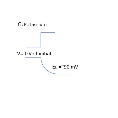 - Ek+ is the reversal potential of Potassium (from the Equilibrium Table) -97 mV)