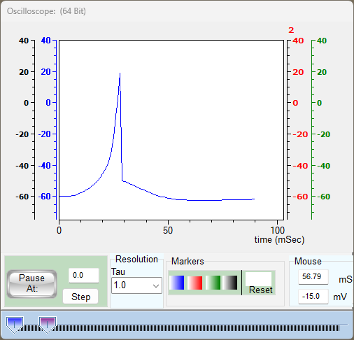 An oscilloscope is provided for examining the inner workings of the neuron. It will look something like this.