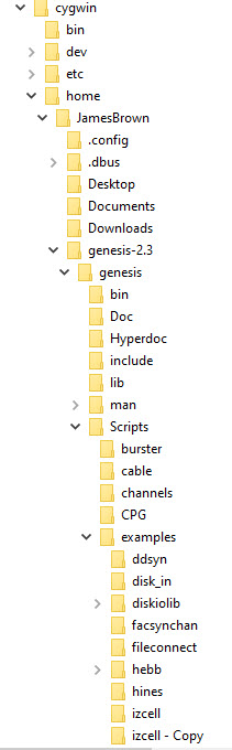 Please note: I got so pissed off at cygWin and the Genesis simulator that, in a fit of pique, I distroyed all of it, even the backups. I would erase my related brain cells if I could.